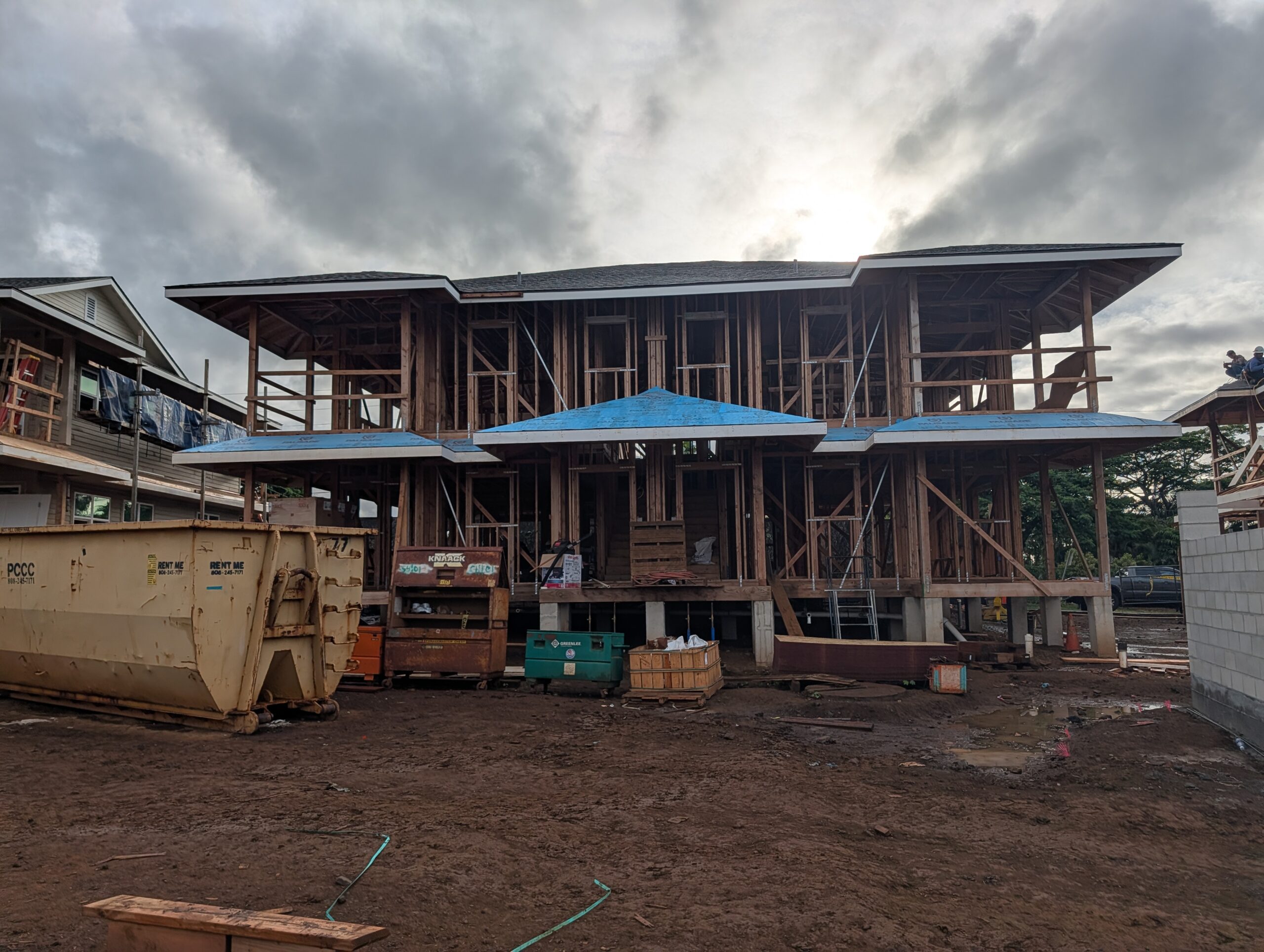 Overall, construction at Kōloa Village continued in line with expectations during October. Multiple buildings have advanced into interior stages, while ongoing framing and roofing keep the remaining structures on track. Coordination between contractors, inspectors, and the project team remains strong, supporting continued progress toward projected completion in 2026.